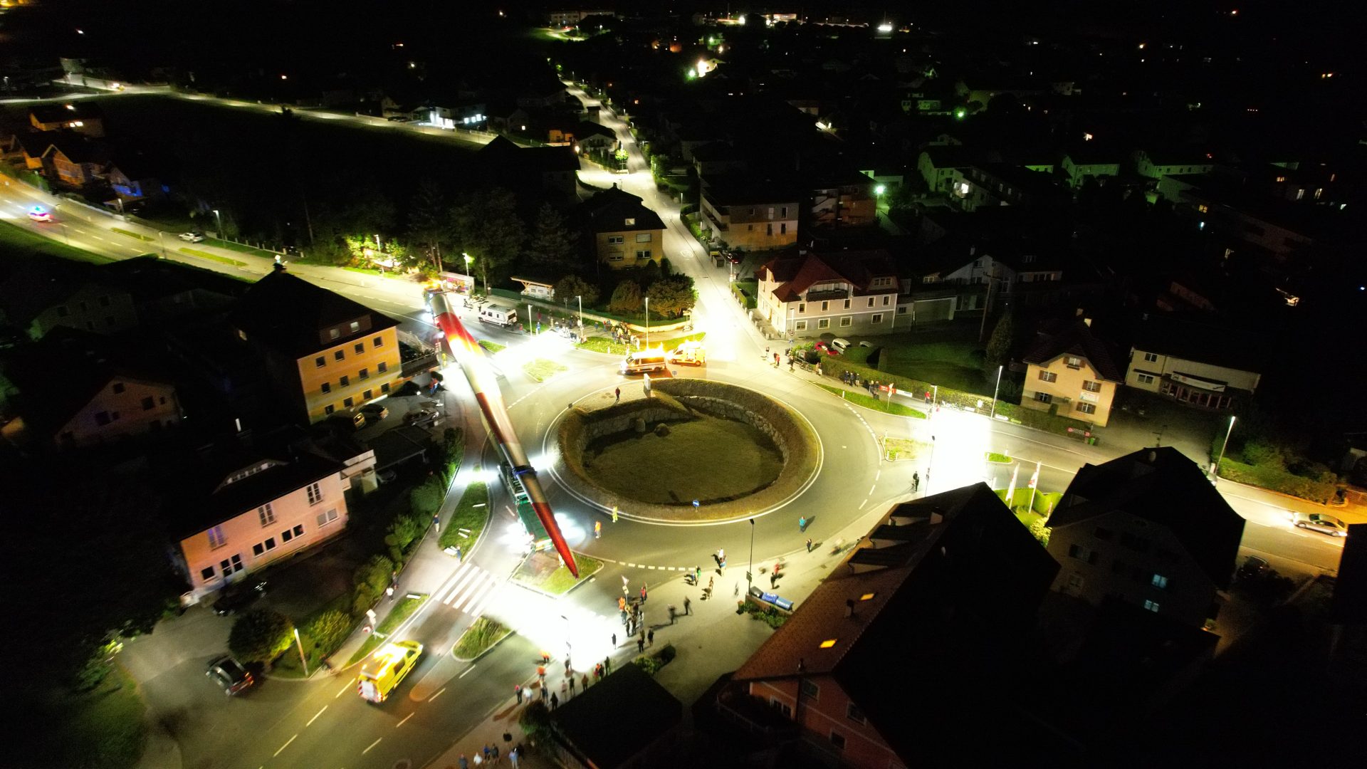 Der Flügeltransport des neuen, sechsten Windrades in Munderfing wurde von der Bevölerung trotz nächtlicher Stunde begeistert beobachtet.