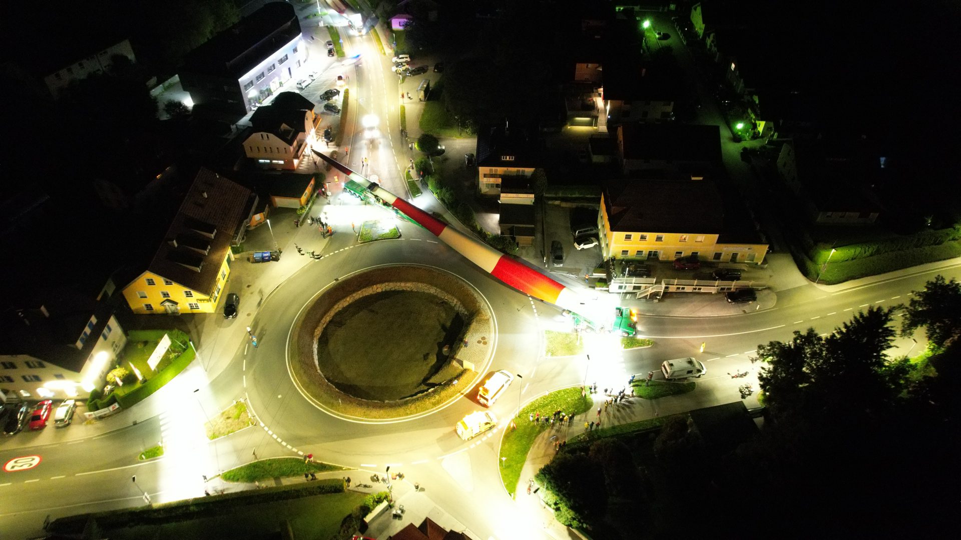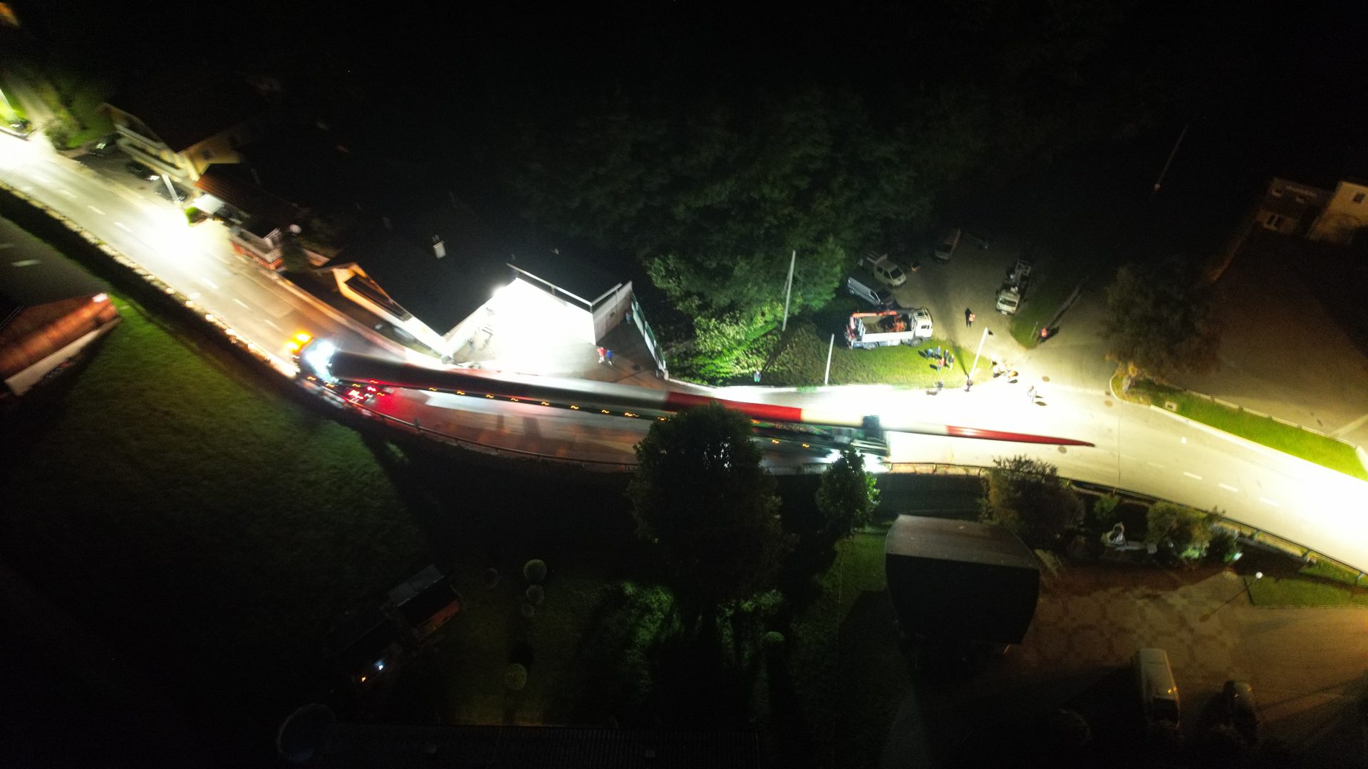 Der Flügeltransport des neuen, sechsten Windrades in Munderfing wurde von der Bevölerung trotz nächtlicher Stunde begeistert beobachtet.