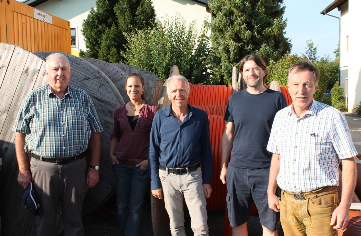 Die Mitarbeiter der Energie Munderfing GmbH (Johann Krammer, Regina Fröhlich, Geschäftsführer Erwin Moser, Projektleiter Helmut Emminger) sowie Bürgermeister Martin Voggenberger.