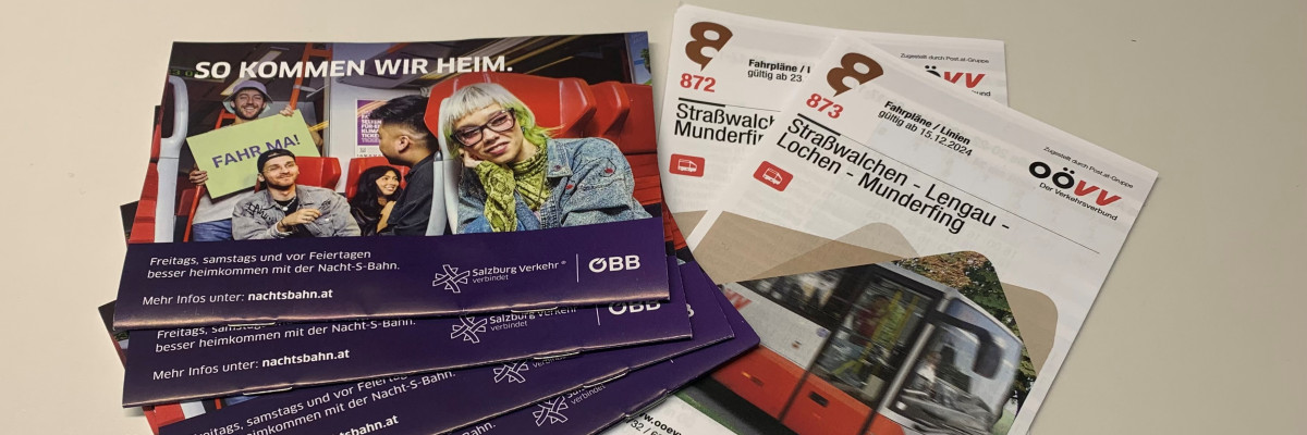 Ab sofort sind am Gemeindeamt die neuen Fahrpläne der ÖBB für Zug und Bus erhältlich.