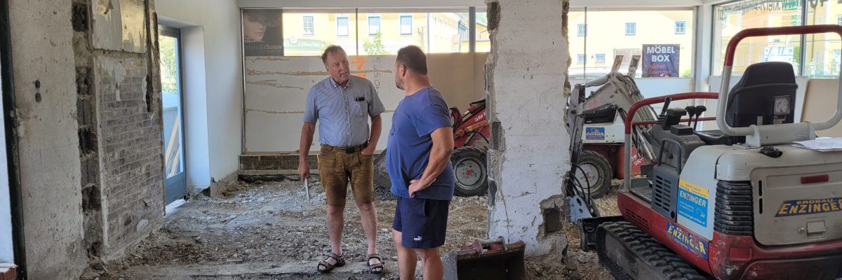 Die Krabbelstubengruppe in der Dr.-Lang-Straße wird im Herbst in neue Räumlichkeiten in der Raiffeisenstraße übersiedeln. Zukünftig befinden sich dann alle drei Krabbelgruppen auf einem Standort, was die Organisation und Betreuung der Gruppen erleichtert. Die Bauarbeiten hierfür sind bereits voll im Gange! Ein Dankeschön an Josef Bogner für die Bereitschaft, die ehemaligen Geschäftsräumlichkeiten so kurzfristig umzubauen und zu sanieren!
