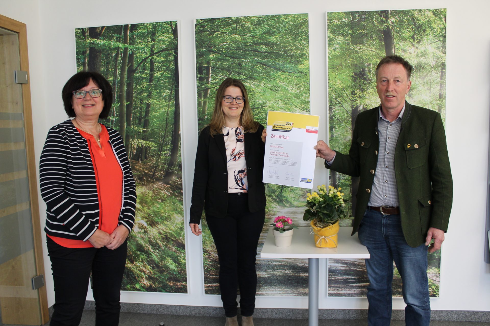 Der Gemeinde Munderfing wurde das Qualitätszertifikat „Gesunde Gemeinde“ für den Zeitraum von 2020 bis 2022 verlängert.