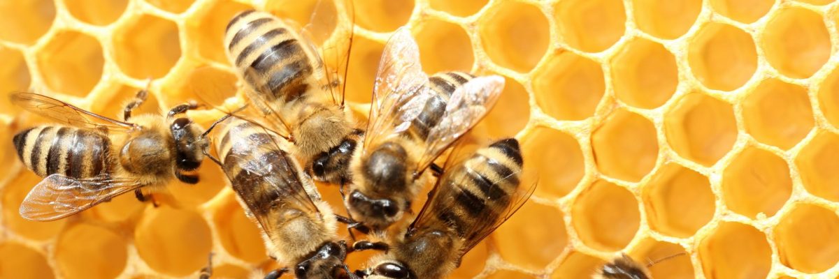 Dieses Bild zeigt Bienen und eine Bienenwabe.