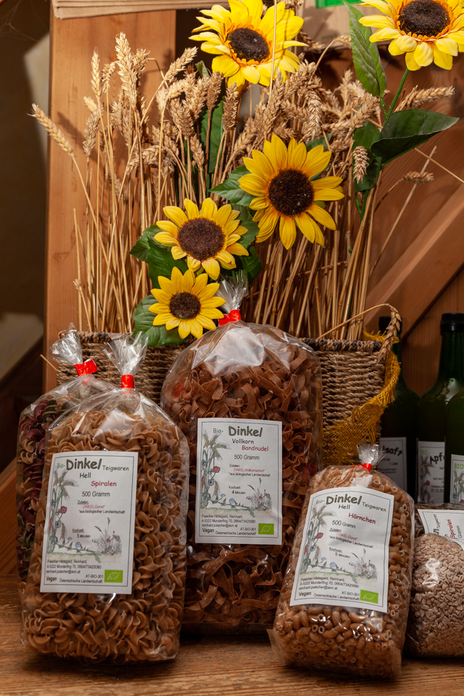 Bio-Dinkelteigwaren, Bio-Getreide, Bio-Getreideprodukte, Nudeln