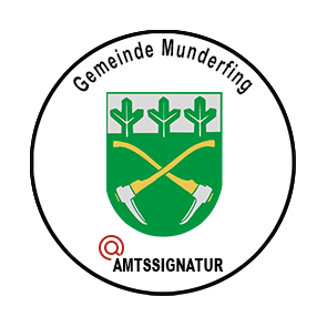 Im Sinne einer durchgängigen elektronischen Verfahrensabwicklung kann die Gemeinde Munderfing auf ihren Erledigungen eine Amtssignatur aufbringen. Dadurch wird erkennbar, dass es sich um ein amtliches Schriftstück der Gemeinde handelt. Durch die Amtssignatur können somit die Herkunft und die Echtheit eines Dokuments überprüft werden. Die Amtssignatur setzt sich gemäß § 19 E-Gov-Gesetz zusammen aus einer Bildmarke, dem Hinweis, dass das Dokument amtssigniert worden ist, sowie Informationen zur Prüfung des elektronischen Dokuments und der Ausdrucke des Dokuments.