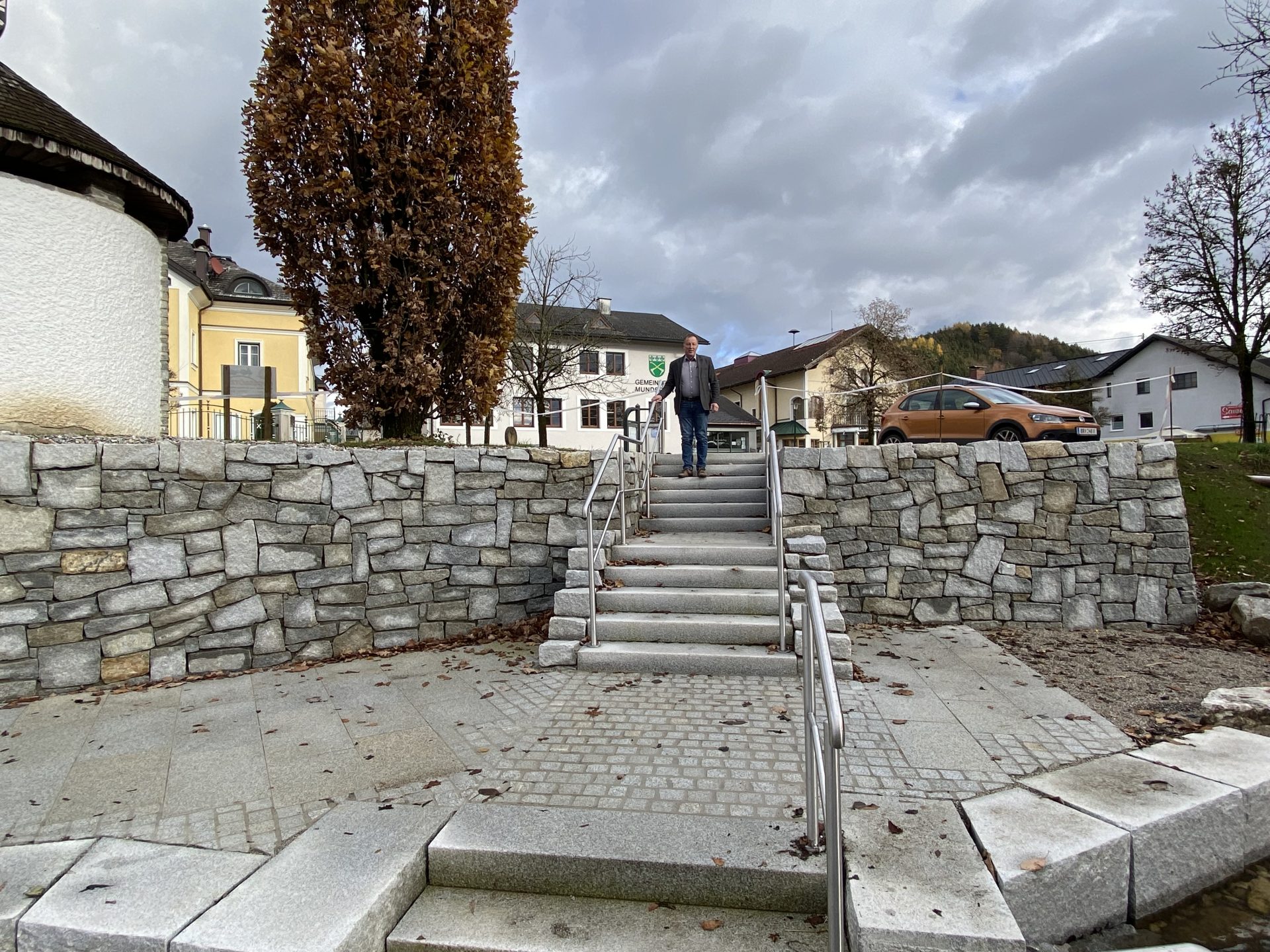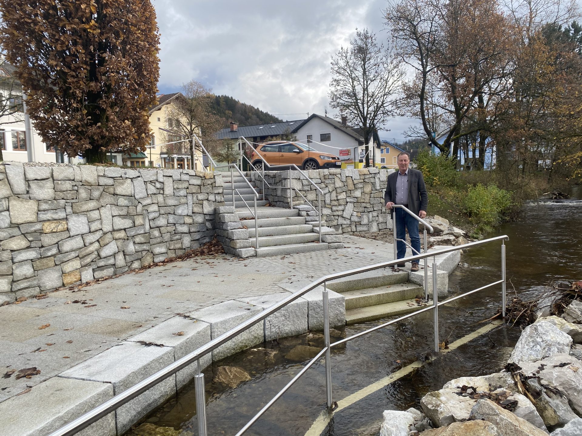 Im Zuge eines groß angelegten Bürgerbeteiligungsprozesses 2014 für die Neugestaltung des Ortskerns wurde von vielen Bürgerinnen und Bürgern mehrfach der Wunsch geäußert, dem Bach wieder mehr Präsenz zu geben und diesen „erlebbar“ zu machen! Daraus ist die Idee des „Flößerstrandes“ am Dorfplatz entstanden.